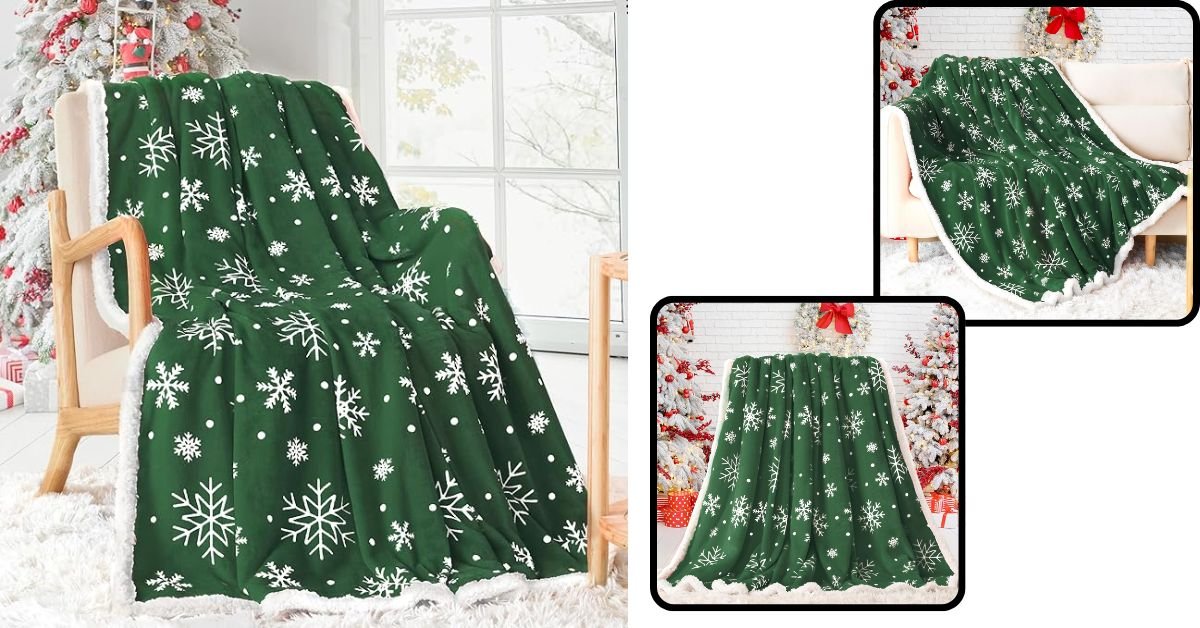The Touchat Sherpa Christmas Throw Blanket measures 50″ x 60″ and features a delightful green snowflake design. Made from a combination of flannel and Sherpa materials, it promises a soft touch and a comforting warmth that is perfect for snuggling up on cold evenings. Available in five colors, this blanket is versatile enough to match various home decor styles, making it an excellent choice for the festive season.