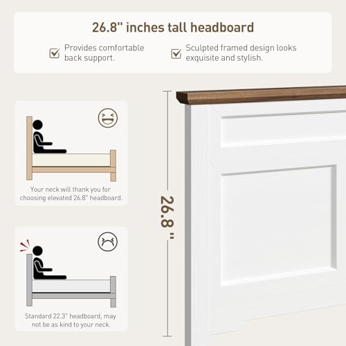 • Built to Last: Engineered rustic wooden headboard with a sturdy base and metal legs ensures stability while minimizing noise for peaceful rest.