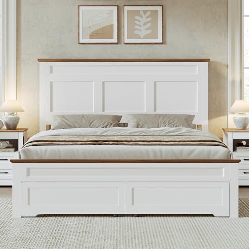 • At amazon.com you can purchase Farmhouse Queen Bed Frame with Storage Drawers for only