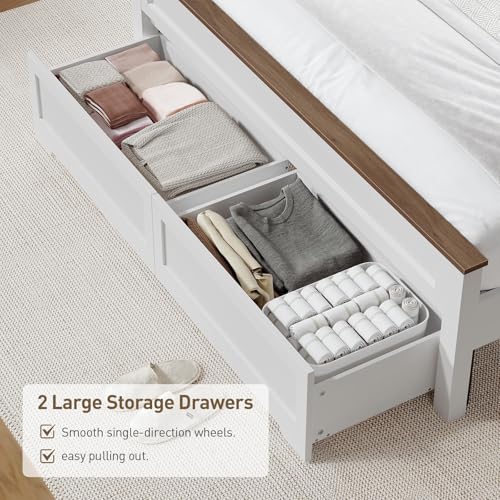 • Hidden Storage Drawers: Features two wheeled storage drawers located at the headfoot, perfect for off-season clothing and bedding.