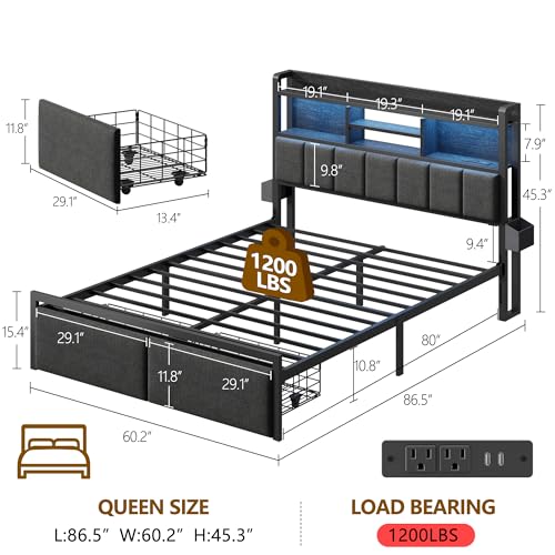 - Convenient Storage: Features under-bed storage drawers with pulleys, plus a built-in charging station equipped with 2 AC outlets and 2 USB ports.