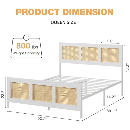 GarveeHome Boho Rattan Queen Bed Frame – No Box Spring Needed