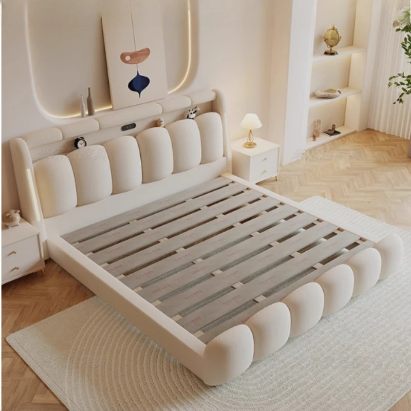 Elevate your bedroom with this stylish Nordic frame, featuring a soft cream upholstery and a spacious storage bag headboard. Perfect for a cozy and modern retreat, this double bed blends comfort with contemporary design. Transform your space today!