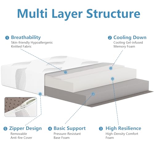 - Construction: Features a three-layer memory foam structure including 1โ cooling gel memory foam, 3.5โ high-density comfort foam, and a 5.5โ support base foam for balanced support.