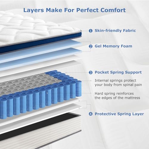 SEZMOONSI 12-Inch Queen Hybrid Mattress – Gel Memory Foam