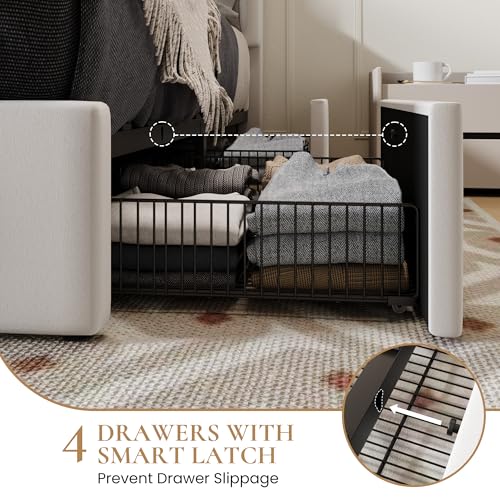 - Large Storage Drawers: Includes 4 spacious drawers on smooth wheels, ideal for storing accessories and keeping your bedroom tidy.