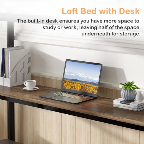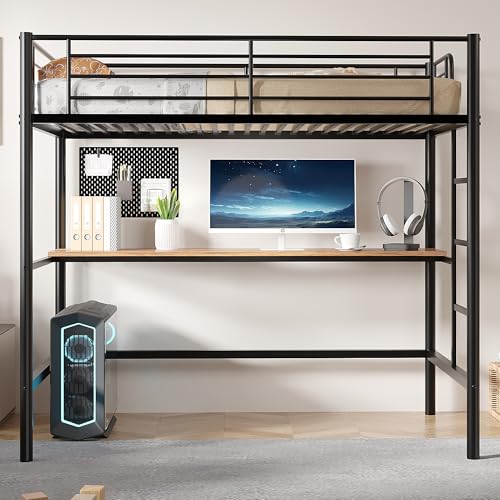 Twin Loft Bed with Desk – Squeak Resistant, No Box Spring Needed