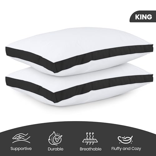 - Set of 2: Enjoy two luxurious black gusset bed pillows with elegant white piping and double stitching for added durability.