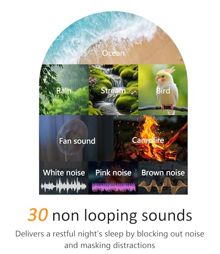 - 30 Soothing Sounds: Choose from a variety of relaxing sounds, including birdsong and ocean waves, perfect for sleep or focus.