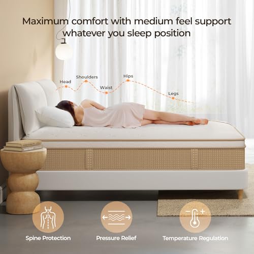 • Powerful Support: Innovative ergonomic design with individual pocketed springs and memory foam evenly distributes weight, supports spinal alignment, and minimizes pressure points for a dreamy night’s sleep.