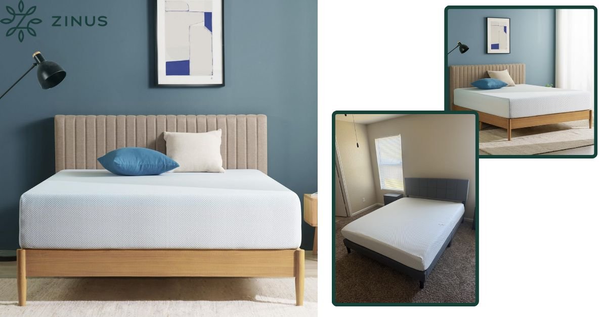 The ZINUS mattress boasts a sleek and modern aesthetic, featuring a soft, quilted cover that is both inviting and practical. The top layer is infused with green tea and charcoal, providing a fresh scent and maintaining cleanliness over time. The mattress is constructed from high-quality foams that are CertiPUR-US certified, ensuring they are free from harmful chemicals. This attention to detail in both design and material choice reflects ZINUS’s commitment to creating a healthier sleep environment.