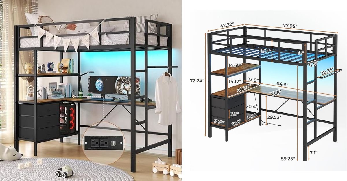 The DICTAC Twin Metal Loft Bed with L-Shaped Desk is an ideal choice for anyone looking to maximize their space while maintaining functionality and style. With its sturdy construction, safety features, and smart design elements, it offers a perfect blend of comfort and practicality for both children and adults alike. At a price of $109.98, this loft bed is not only affordable but also a smart investment for any bedroom.